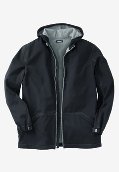 We think big and tall rain gear should look great and be reliable. Trusting in your raincoat only to have it fail is a frustrating scenario, but our selection of water-resistant outerwear has special features coupled with no-fail fabrics to ensure you arrive at your destination happy and dry. Our big and tall rain gear offers an extra length option and is available in sizes L–8XL.