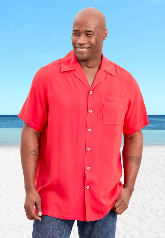 Whether you're on vacation or just enjoying a sunny day at home, our KS Island™ Solid Camp Shirt will keep you cool and comfortable. The vibrant colors, breezy open collar, and the coconut buttons make it the perfect summer shirt and must-have item for vacation.