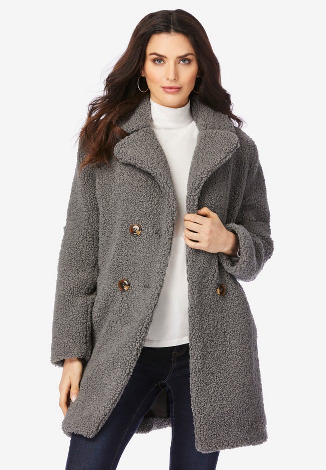 Plus Size Double Breasted Teddy Coat