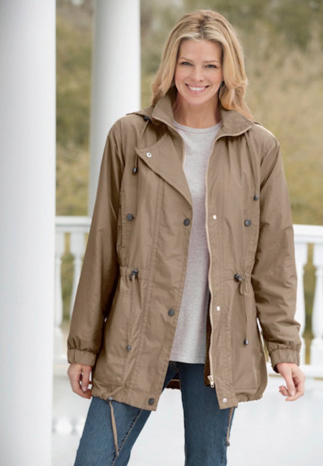 The Woman Within Women’s Plus Size Fleece-Lined Taslon® Anorak Jacket is designed to protect you from the elements with customizable coverage and customizable fit. Crafted from durable, water-resistant Taslon® nylon/poly with a soft, removable fleece lining, this women’s plus size anorak offers reliable warmth, wind protection, and breathability without added bulk. Adjustable drawstrings at the hood, waist, and hem, along with Average and Petite lengths, ensure a flattering, made-for-you fit in changing weather.